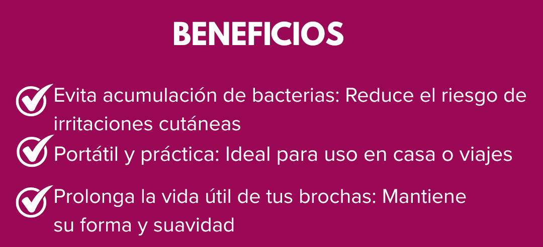 - Recipiente de silicona suave: Protege la forma y textura de tus brochas.