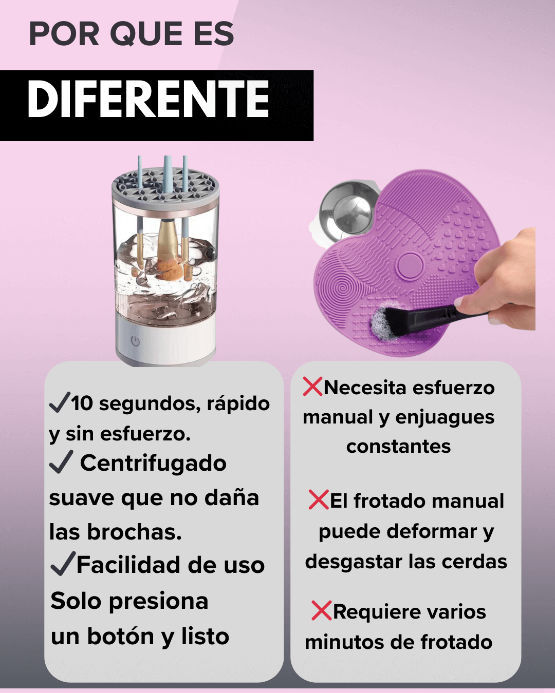 - Tecnología de centrifugado: Limpieza profunda y rápida sin dañar las cerdas.