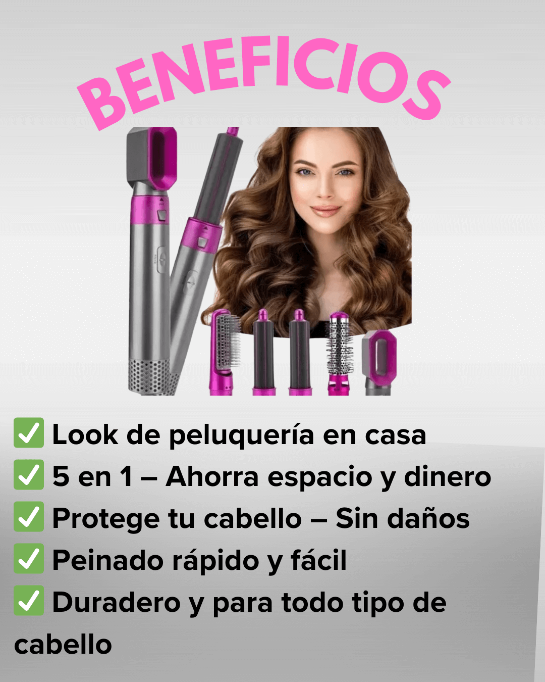 SmoothGlow™ |CEPILLO MULTIFUNCIONAL 5 EN 1: PEINA, SECA, ALISA Y RIZA EN MINUTOS